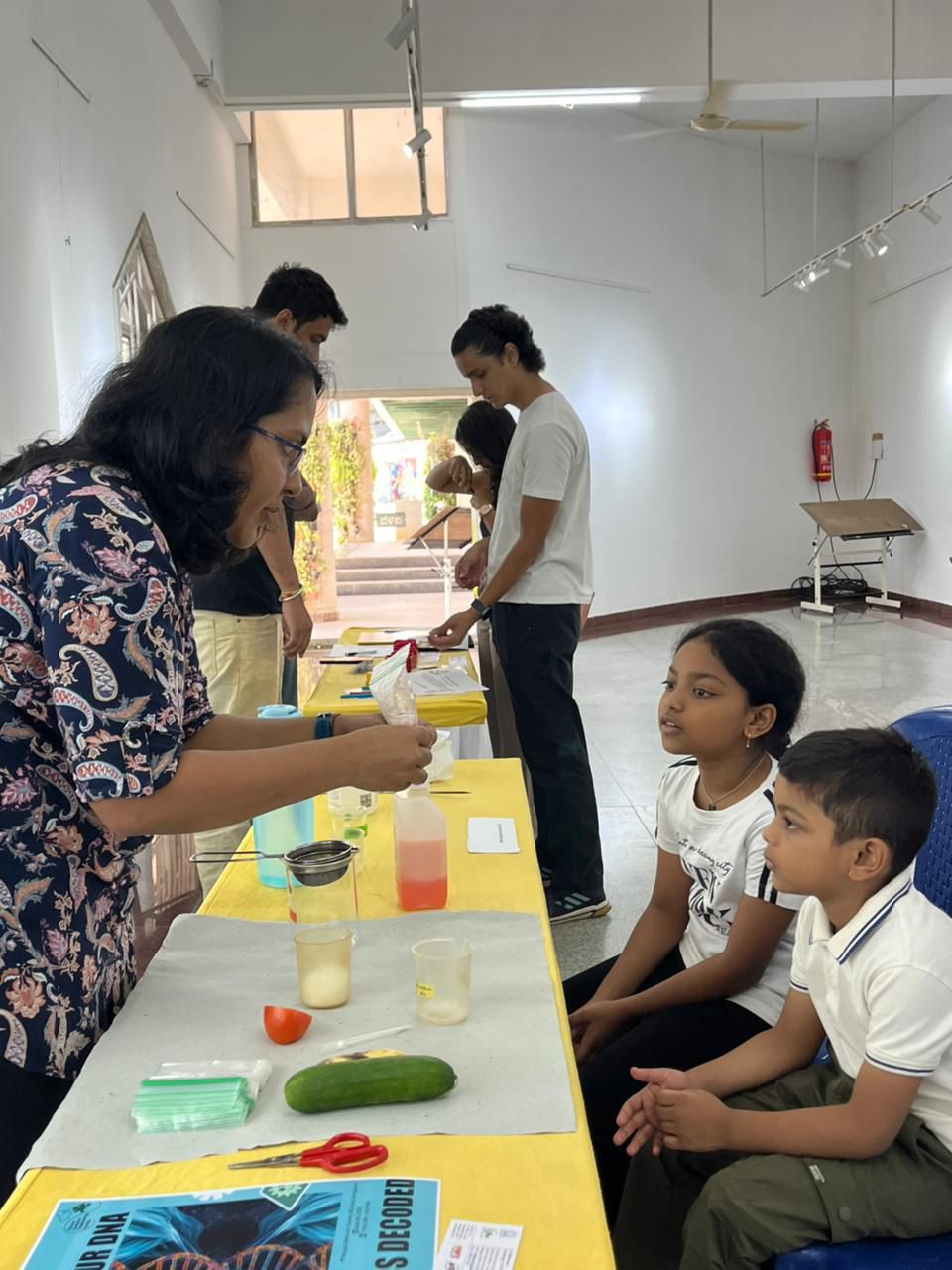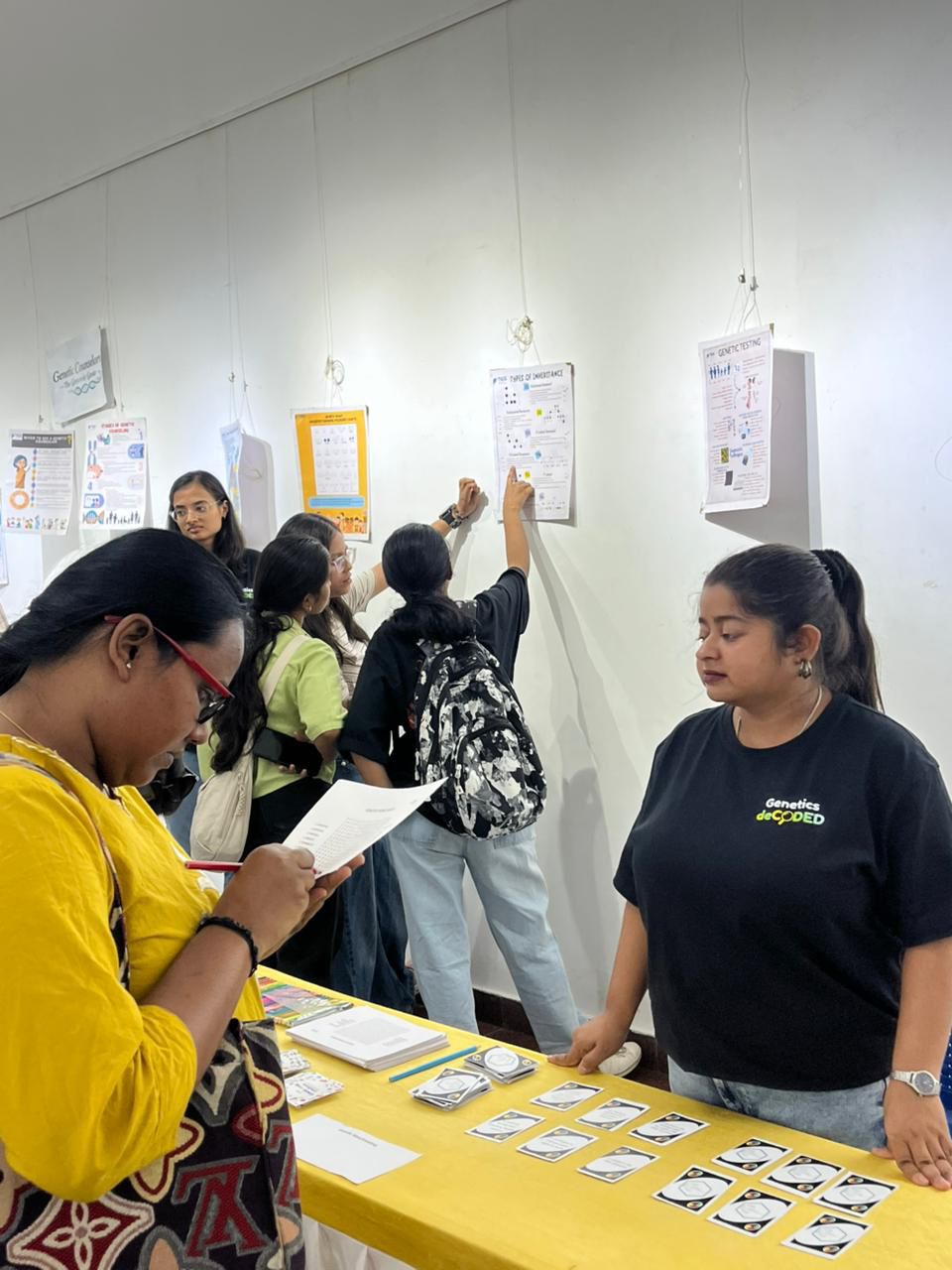Bringing science beyond the lab and into public spaces, the event created an interactive platform for people from diverse backgrounds to engage with genetics in accessible and meaningful ways. Participants took part in hands-on activities such as DNA extraction from fruits, exploring inheritance patterns, and solving interactive puzzles that connected genetics to everyday health and family histories.