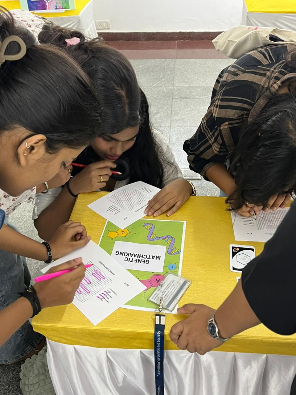 The event also featured “Talk to a Scientist” session, where participants engaged directly with scientists and explored career pathways in genetics. PhD scholars from our institute presented their work through posters, facilitated interactive discussions, and led engaging, game-based activities during the event, bringing in elements of gamification to make complex concepts easier to understand.