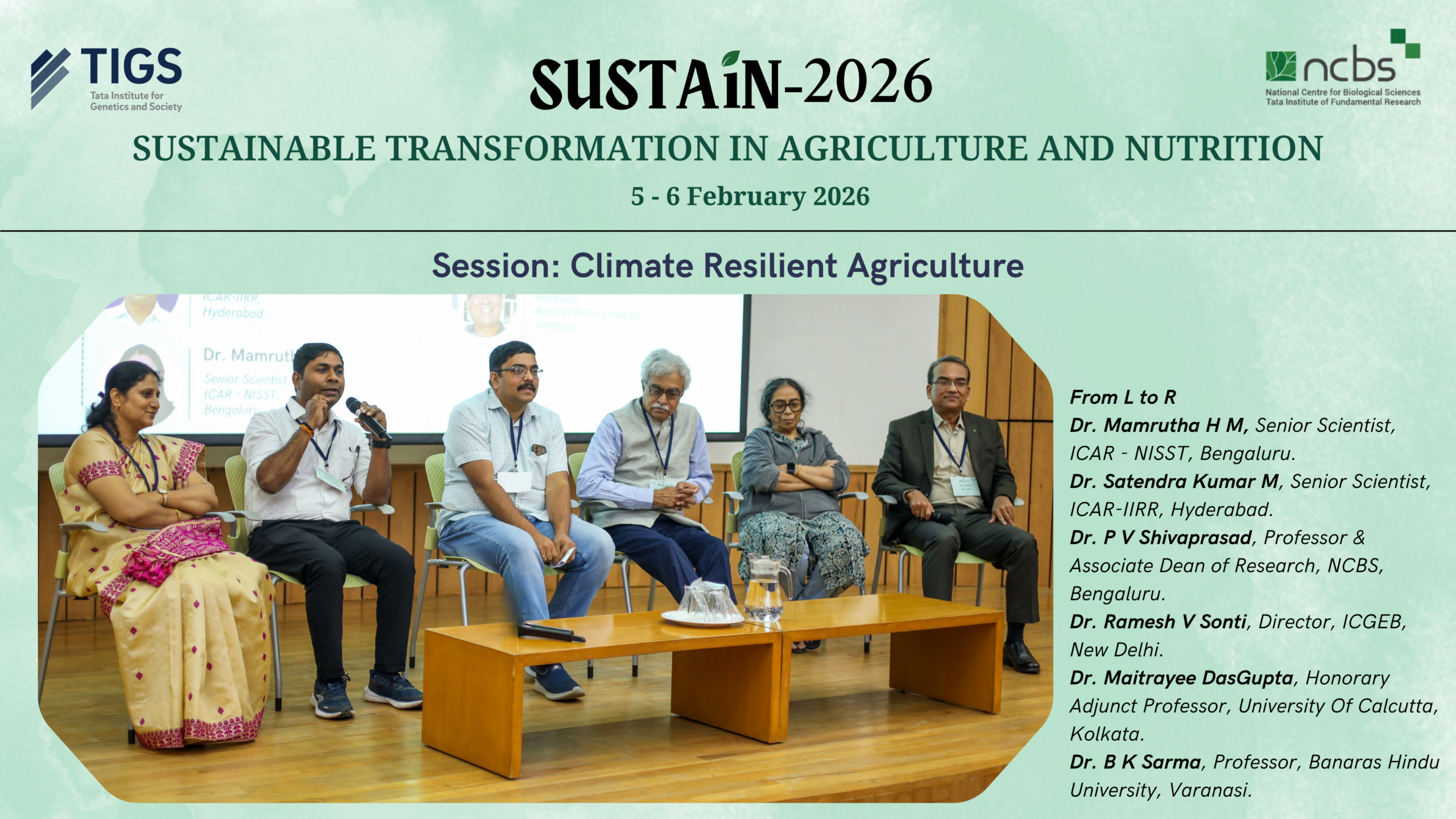 TIGS extends its sincere appreciation to all speakers, panelists, poster presenters, collaborators, and other participants whose contributions made the event a success. We look forward to building on the momentum generated through SUSTAiN 2026 and advancing collective efforts toward building sustainable agriculture solutions and nutrition systems in India.